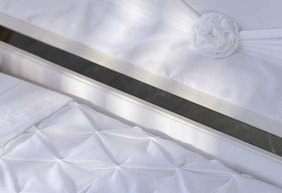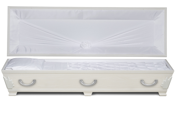 Klassisk folierad kista, tillverkad av spån- och MDF-skiva. Vackra metallhandtag och hörnskärningar samt gångjärn och nyckellås. Tyginredning i form av madrass, kudde och klassiskt noppat täcke med överlakansflik i bomull. Lock med vackert draperade dekorationer. Sidoklädsel i tyg.