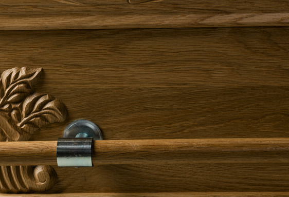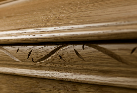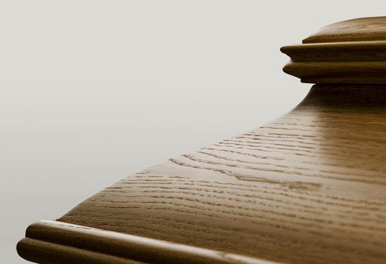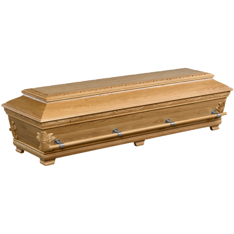 Vår Royal är ett förstklassigt hantverk i massiv ek med gångjärn och nyckellås. Går att få klarlackad eller brunbetsad. Tyginredning i form av madrass, kudde och täcke med överlakansflik i bomull. Klassiskt noppat täcke och lock med veckade sidostycken och vackert draperade dekorationer.
