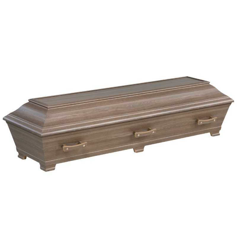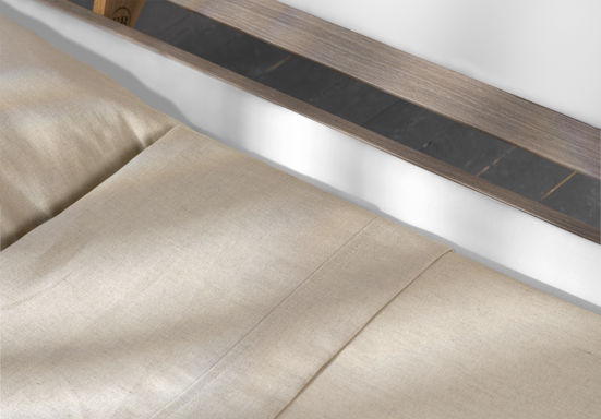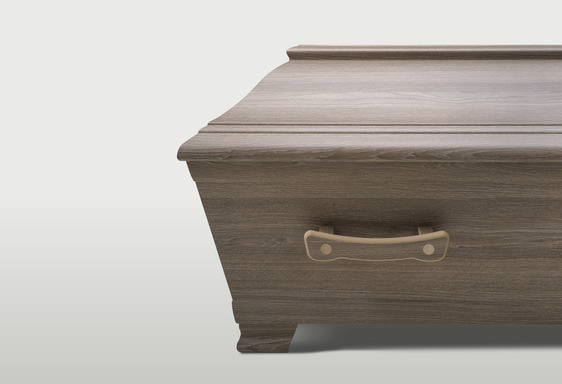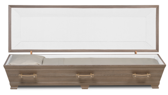 Elegant kista tillverkad av spån- och MDF-skiva. Inredning bestående av av kudde och täcke med överlakansflik i linnekvalitet. Madrass i nonwoven-textil. Lock- och sidoklädsel i bomullstyg.